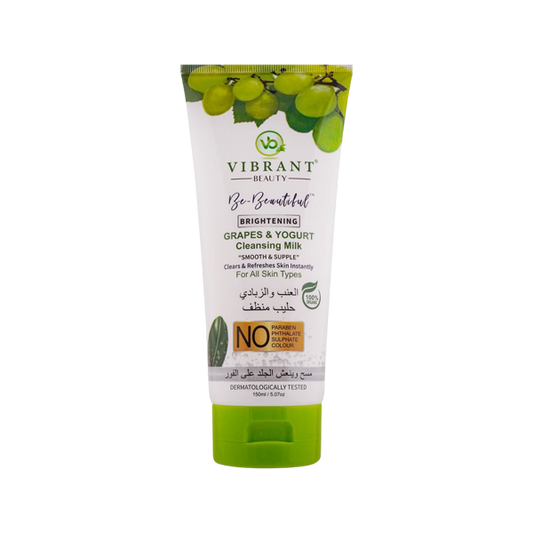 Vibrant Beauty Cleansing Milk Brightening Grapes And Yogurt 150mlVibrant Beauty Cleansing Milk, enhanced with the revitalizing qualities of nutritious yogurt and brightening grapes, is the key to glowing skin. This opulent 150ml product removes pollutants and makeup with ease, leaving the complexion looking radiant and new. What is Vibrant Beauty Cleansing Milk?...