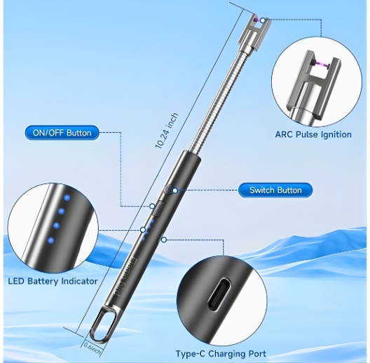 Built with a sleek, durable metal body, this USB rechargeable lighter is ideal for candles, BBQ, camping, kitchen use, travel, and everyday carry. Its windproof arc flame ensures safe, clean, and efficient lighting every time.